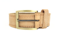 Un cinto en suave cuero argentino, con una textura gamuzada y hebilla rectangular en color bronce, ideal para combinarlo con otros accesorios en tonos café. Para un look semi formal, queda perfecto con nuestros zapatos Santa Fé marrón